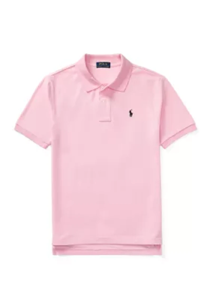 Cut from lightweight, breathable cotton mesh, this Polo shirt is just as classic as Dad's, down to Ralph Lauren's signature embroidered pony at the chest. Two-button placket Ribbed Polo collar Short sleeves with ribbed armbands Signature embroidered pony at the left chest Imported Product Specifications Size medium has a 23.75 in front body length and a 24.75 in back body length Material & Care Cotton Machine washable