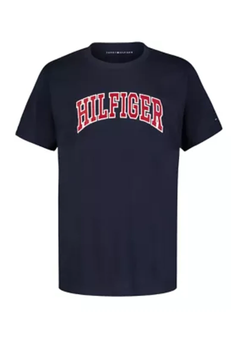 He'll be free to enjoy a day of endless fun in this cool logo motif t-shirt from Tommy Hilfiger. Pullover Crew neck Short sleeves Imported Material & Care Cotton, polyester Machine washable