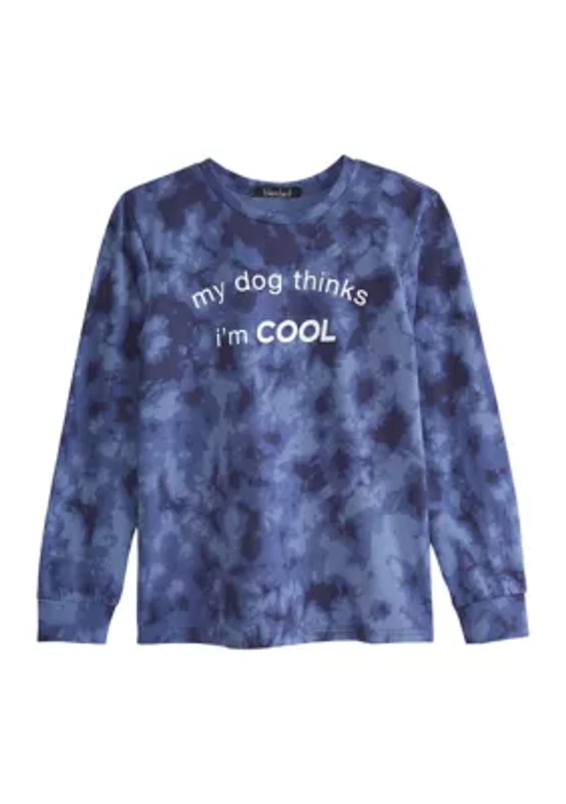 Teeming with tie-dye, this long sleeve graphic t-shirt from blended will effortlessly refresh his casual collection. Pullover Crew neck Long set-in sleeves Imported Material & Care Cotton, polyester Machine washable