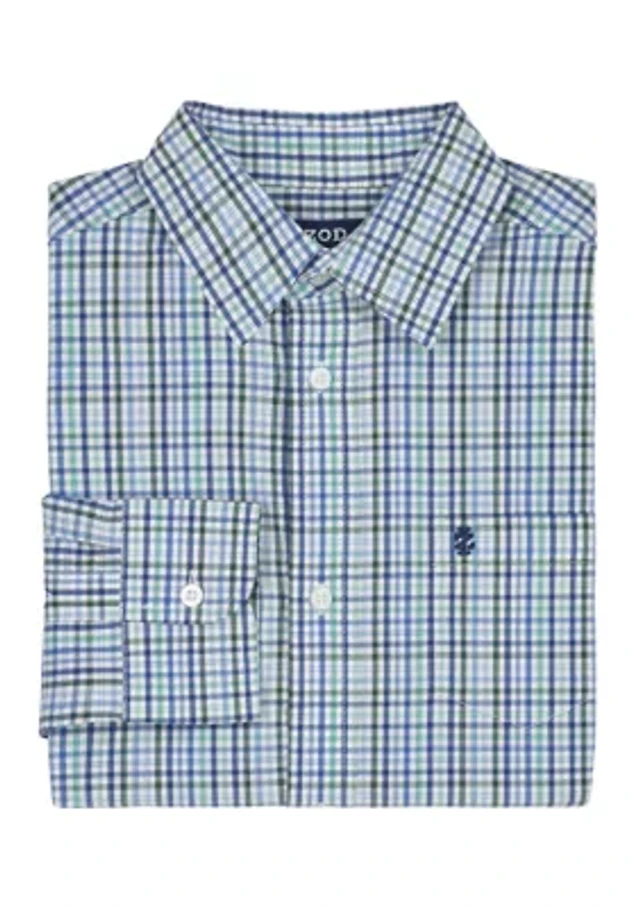 Boys 8-20 Long Sleeve Woven Shore Plaid Poplin Shirt