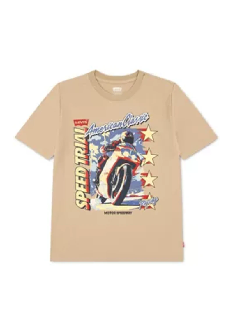 Featuring a graphic print on the front, this short-sleeve Levi's® T-shirt is perfect for your boys' days out. Pullover Crew neck Short sleeves Imported Material & Care Cotton, polyester Machine washable