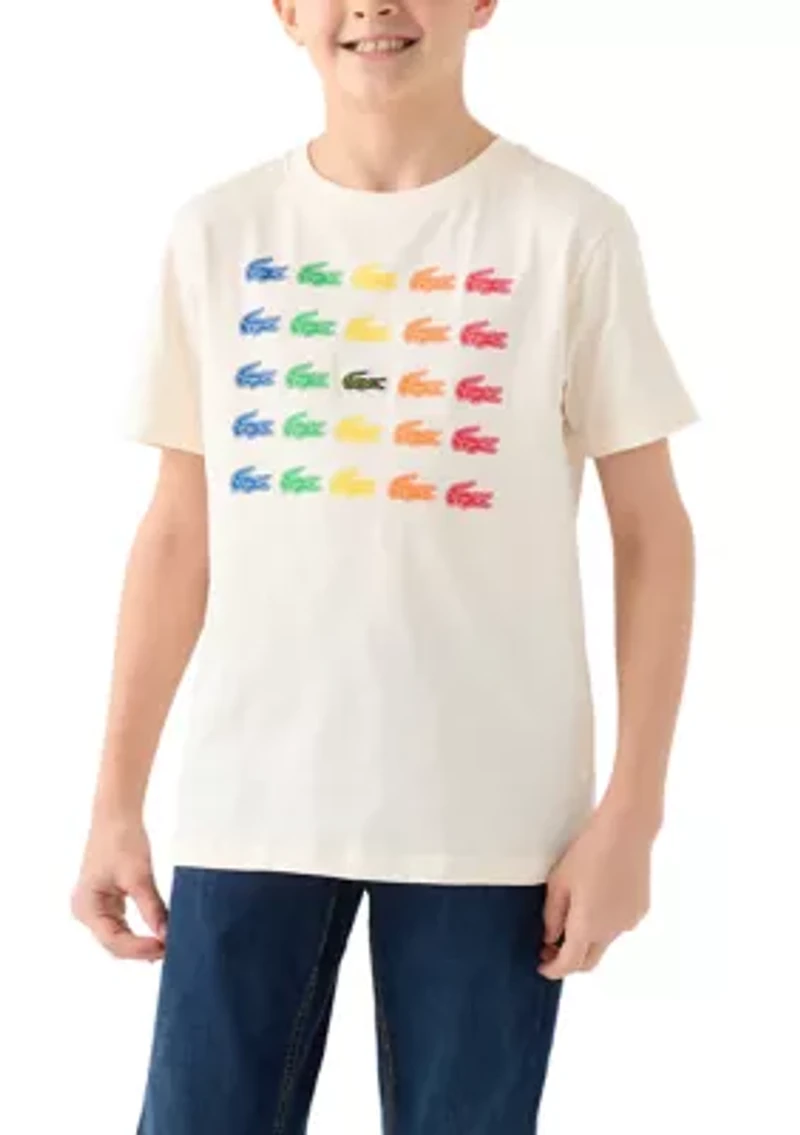 Tiny Lacoste crocs in a rainbow design add fun appeal to this t-shirt. Pullover Crew neck Short sleeves Imported Material & Care Cotton, polyester Machine washable