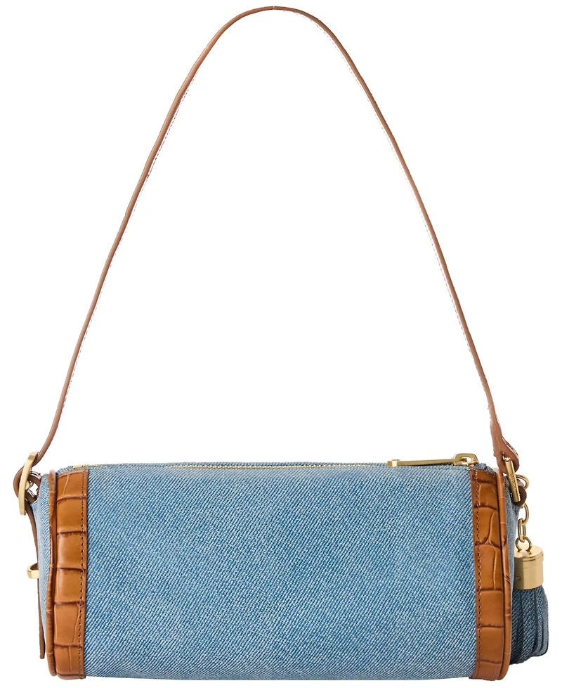 Charming and contemporary, this Brahmin shoulder bag features a barrel silhouette crafted from lightweight Alden Road leather, offering a softer take on the croc-embossed style. Functional hardware, including a center bar buckle and side keeper, allows easy adjustments, while a logo plaque adds understated luxury.