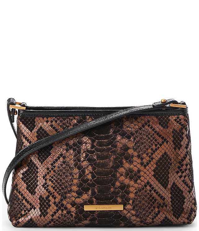 BRAHMIN Tan Dawnlight Collection Snake Embossed Kalina Shoulder Bag