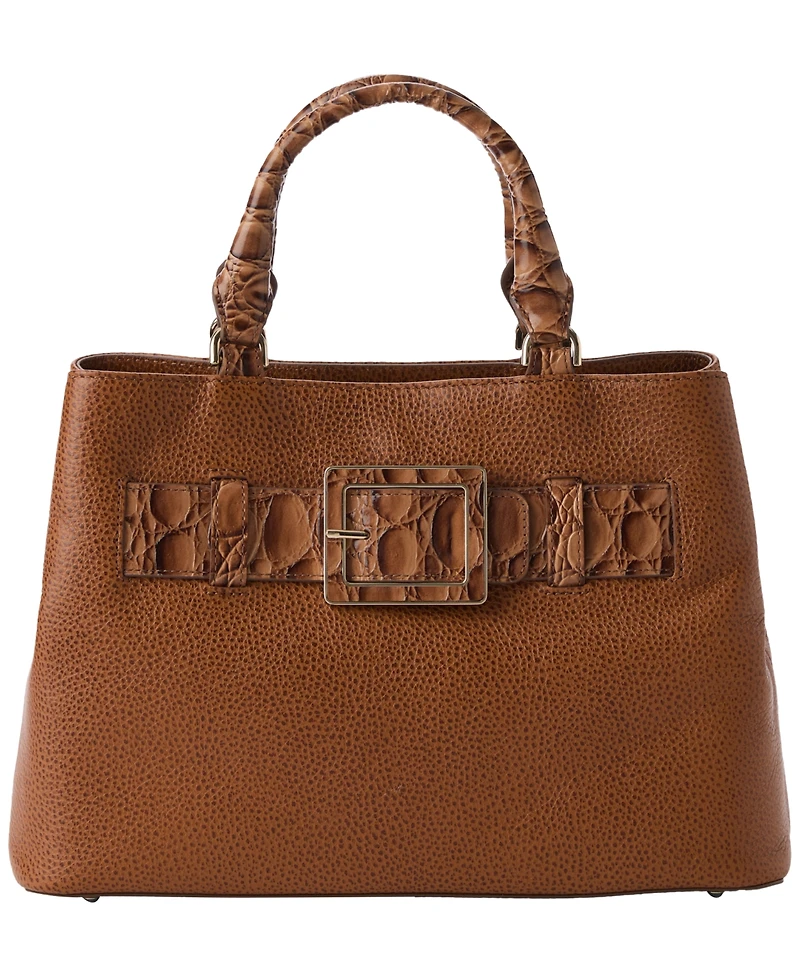 Embrace airy elegance with this Brahmin satchel, shaped in a roomy silhouette for versatile carry. A magnetic closure allows easy access, interior pockets organize essentials, and a fixed tassel adds a refined accent.