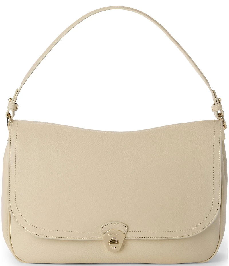 From BRAHMIN, this shoulder bag features: Jolene is an oversized shoulder style designed in smooth pebble leather for a slouchier silhouette with a beautiful drape. The perfect style to highlight our softer styles, this handbag will fit all your essentials with optimal interior organization. Its vintage-inspired turn-lock closure adds security and elegance. Metal hardware on the gussets add function, without sacrificing luxury. Ivory pebbled smooth leather Flap turn-lock closure Key clip Interior zip divider, interior back zip pocket, double kangaroo and pen pocket Flat shoulder strap, removable adjustable crossbody strap Approx. 12" handle drop Approx. 25" crossbody strap drop Approx. 13.5'' L x 9.25'' H x 3.5'' W Approx. 2.06 lbs Imported.