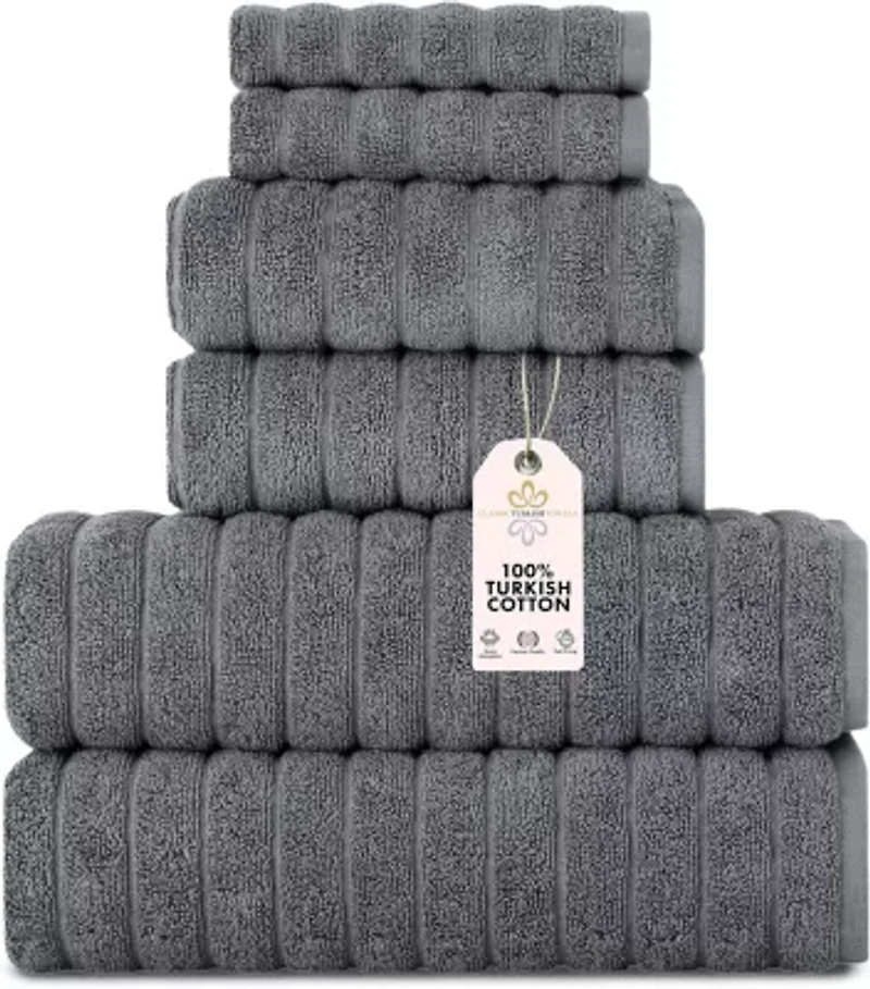 Made from 100% premium Turkish cotton, our towels feature a cozy and plush fabric that provides exceptional comfort and absorbency. The high-quality 620 GSM cotton ensures durability and a luxurious feel, making these towels a standout addition to any bathroom. Our Turkish towel set of 6 includes various sizes to meet your everyday needs: 2 standard bath towels (27 x 54 inches), 2 hand towels (20 x 32 inches), and 2 washcloths (13 x 13 inches). These versatile towels are perfect for the beach, spa, resorts, hotels and more. Keep your towels looking and feeling their best for the Christmas season, just machine wash in cold water with similar colors. Tumble dry on low to maintain their cozy texture and prevent shrinkage. Avoid bleach or fabric softeners to preserve absorbency, making them ready for every holiday gathering. Our BRAMPTON towel sets are designed with quick-drying technology, ensuring they dry rapidly after use. Its quick-drying nature ensures that your towel set is ready to use again in no time, making it a practical and convenient choice for everyday use. 6 Soft 620 GSM Solid Turkey Imported Product Specifications 15 x 12 x 6 inches 4 LBS Material & Care 100% Cotton Cotton Machine washable, gentle cycle