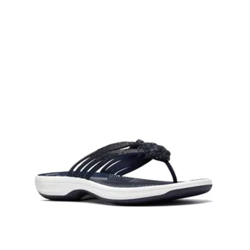 Flip-flop Breeze Gem is topped with sparkly studs for a subtle shimmery look that elevates every summer ensemble. We’ve crafted it with a super-soft footbed which cushions every step, as well as Clarks Cloudsteppers signature, light-as-a-cloud sole, flexing effortlessly to keep pace with your plans. - Navy textile upper with sparkly stud detailing - Cushion Soft™ foam footbed for shock absorption and comfort - Grippy and flexible TPR (thermoplastic rubber) sole brings extra stability and traction - Heel height: 30mm Cambodia Imported Product Specifications 1.125 inches 42 M Material Textile, TPR, Polyester Polyester