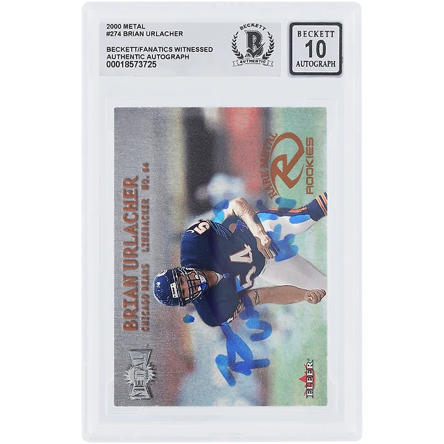 Brian Urlacher Chicago Bears Autographed 2000 Fleer Metal #274 Beckett Fanatics Witnessed Authenticated 10 Rookie Card with "HOF 18" Inscription