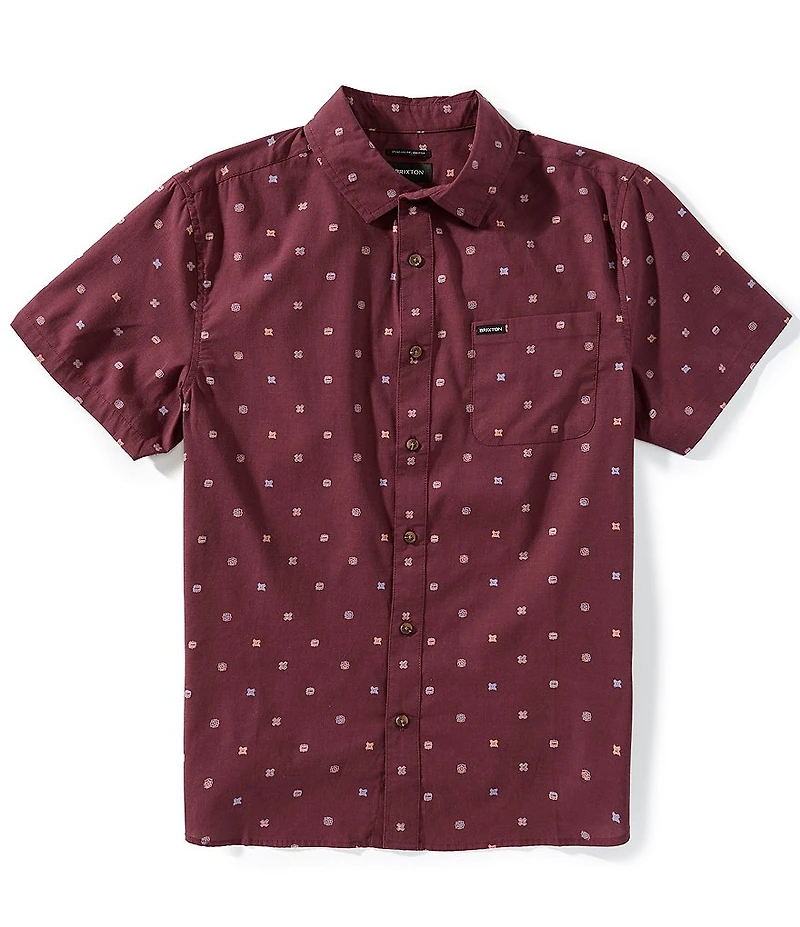 From Brixton, this shirt features: Standard fit Spread collar Short sleeves Button-front closure Patch pocket with woven label on the left side of the chest Curved hem Stretch construction for comfort and mobility Cotton/polyester/elastane Machine wash/tumble dry Imported.