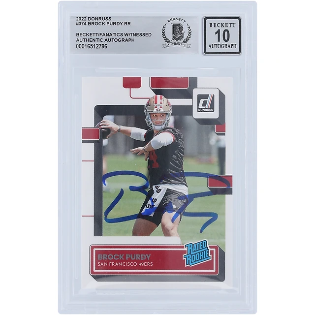 Brock Purdy San Francisco 49ers Autographed 2022 Panini Donruss Rated Rookie #374 Beckett Fanatics Witnessed Authenticated 10 Rookie Card