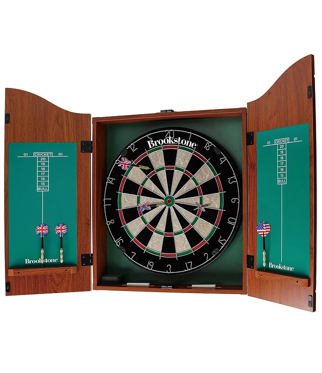 Brookstone Genuine Bristle Dartboard Cabinet Game Set