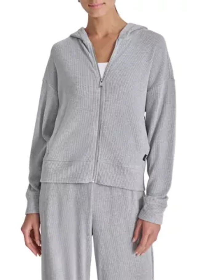 Brushed Rib Knit Full Zip Hoodie