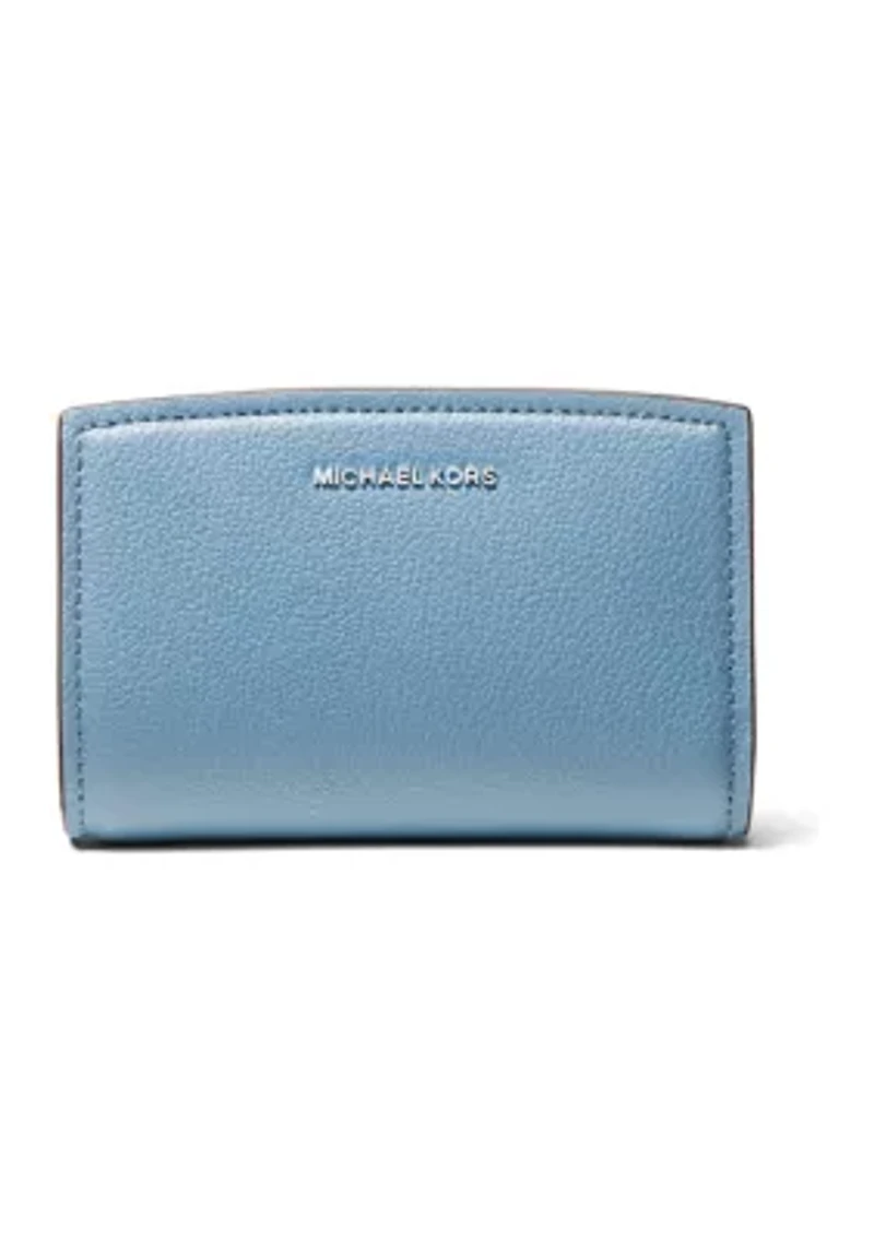MICHAEL Michael Kors' compact leather wallet is a must-have for the modern woman. Crafted from genuine leather, it boasts a sleek and sophisticated design that complements any outfit. Its compact size makes it easy to carry, while its spacious interior offers ample room for your essentials, including cards, cash and coins. Designed with your convenience in mind, this wallet is a perfect blend of style and functionality. Zip closure Imported Product Specifications 5.5" W x 3.75" H x 1.5" D Material & Care Leather Wipe clean