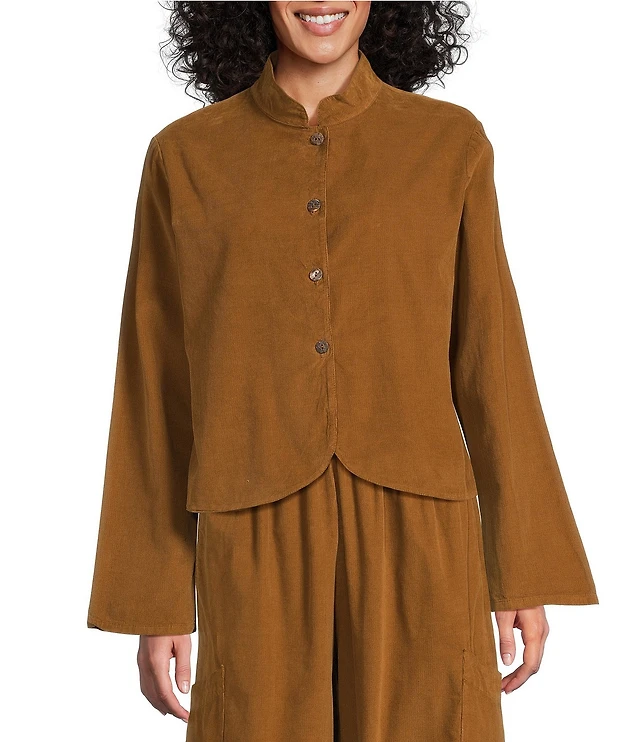 Bryn Walker Cotton Corduroy Mandarin Collar Long Sleeve Button Front Jacket