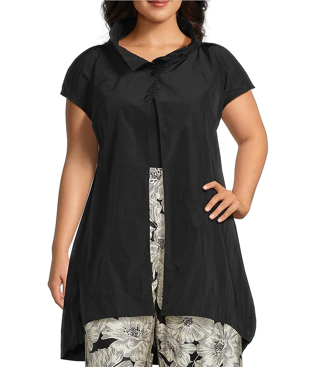 Bryn Walker Plus Gael Memory Crunch Mandarin Collar Cap Sleeve A-Line Vest