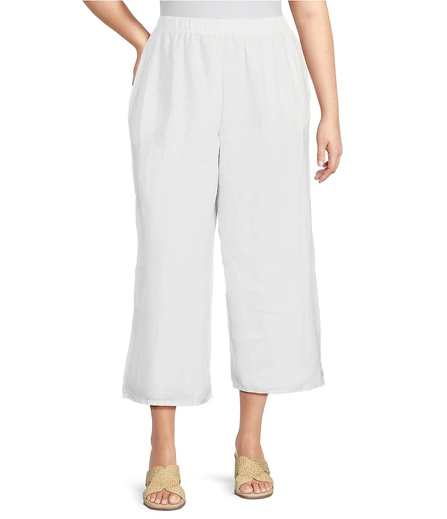 Bryn Walker Plus Size Light Linen Elastic Waist Wide Leg Flood Pants