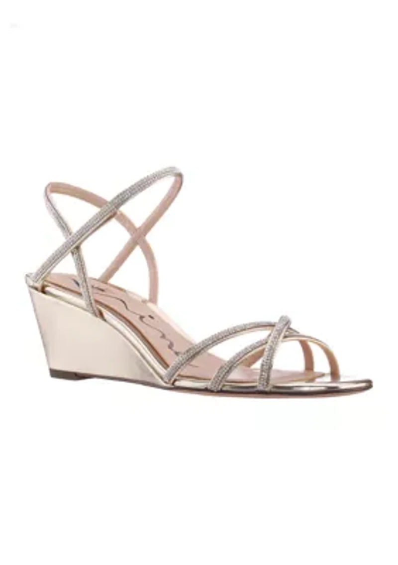 These fashionable sandals from Nina feature a stylish wedge heel for a flattering lift, perfect for everyday wear. Velcro closure Padded insole Imported Product Specifications 2.38" heel Medium width Material Lining: synthetic; Outsole: composition leather; Upper fabric: polyurethane Polyurethane