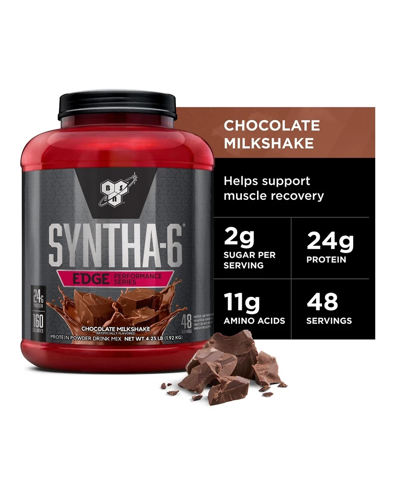 Bsn Syntha-6 Edge Protein Powder, Hydrolyzed Whey, Micellar Casein, Milk Protein Isolate, Low Sugar, 24g Protein, Chocolate Milkshake, 48 Servings