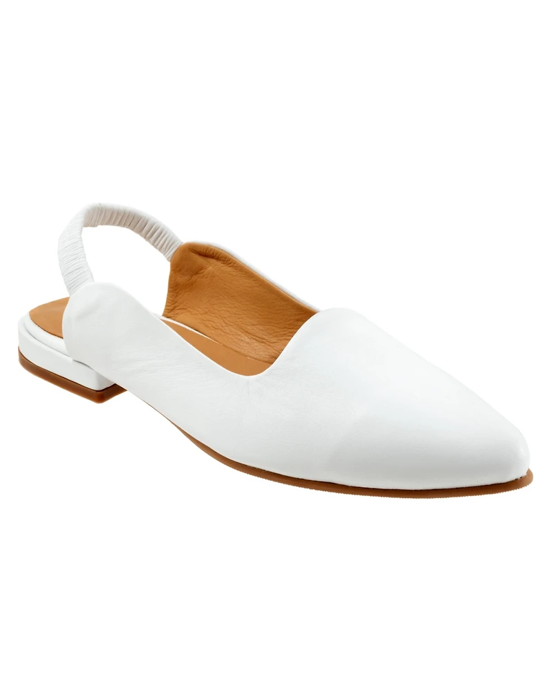 The Indie pointed toe flat has an elasticized back strap and full leather lining.