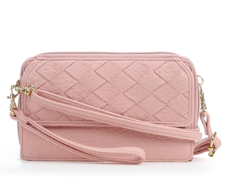 Bueno Of California Woven Wallet on a String Crossbody Bag The Bueno of California Woven Wallet on a String Crossbody Bag combines textured faux leather with an elegant woven pattern, creating a chic yet functional design. With multiple compartments to organize your essentials, it keeps everything you need at your fingertips. The adjustable strap ensures comfortable, hands-free wear, making it the perfect accessory for any occasion.