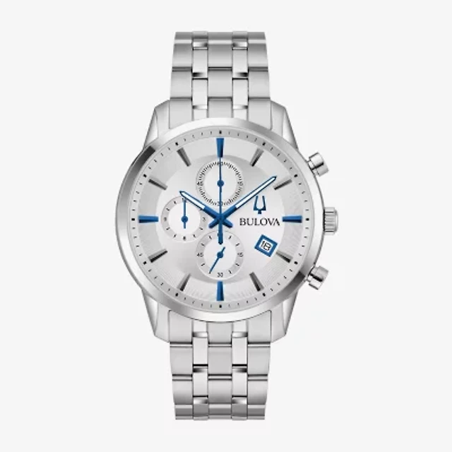 Bulova Mens Chronograph Silver Tone Stainless Steel Bracelet Watch 96b305