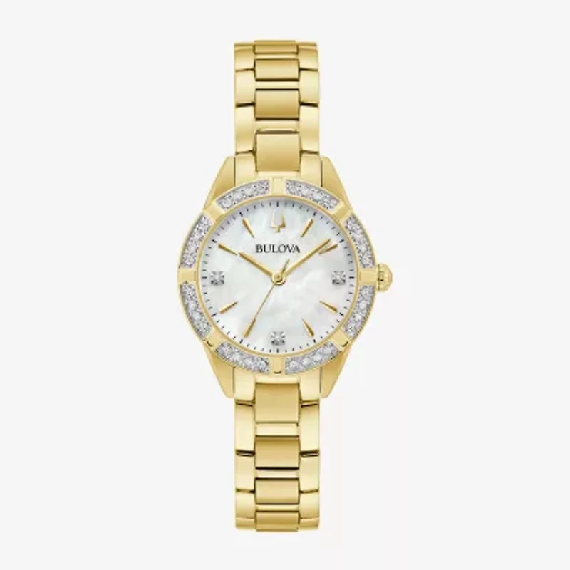 Bulova Classic Sutton Womens Diamond Accent Gold Tone Stainless Steel Bracelet Watch 98r297