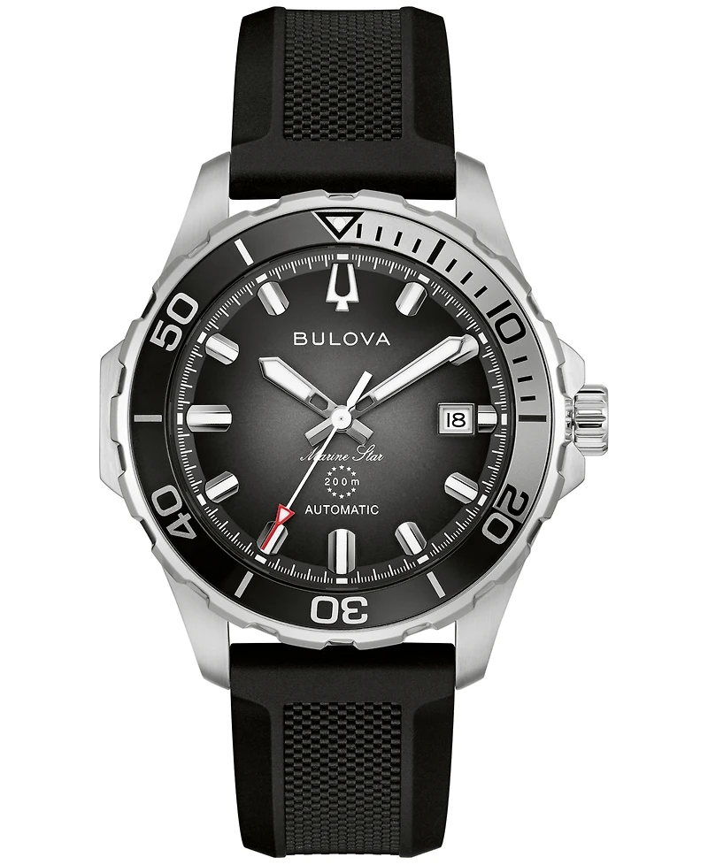 Bulova Men's Marine Star Series B Automatic Black Silicone Rubber Watch 45mm