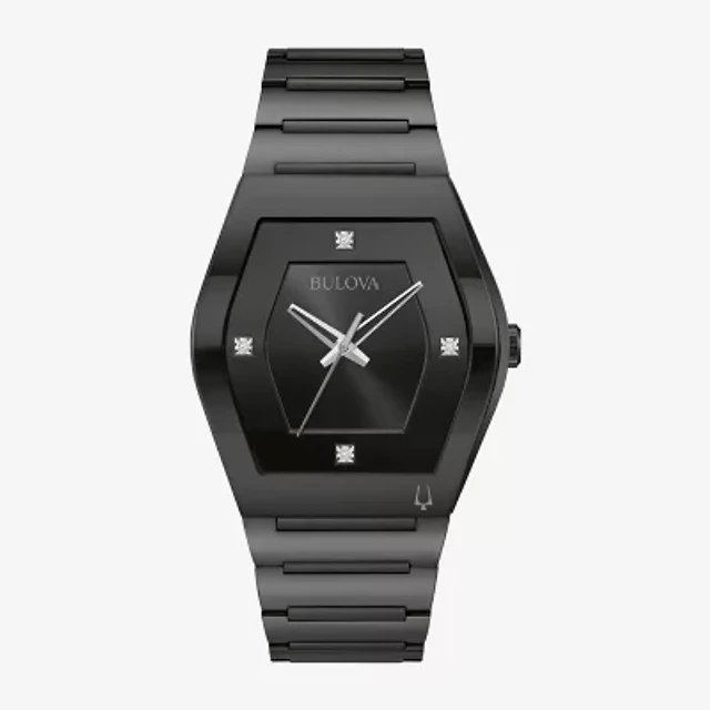 Bulova Modern Gemini Mens Diamond Accent Black Stainless Steel Bracelet Watch 98d177
