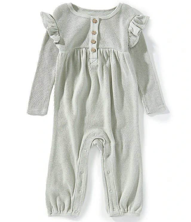 Burt's Bees Baby Girls Organic Cotton Long Ruffle Sleeve Thermal Jumpsuit