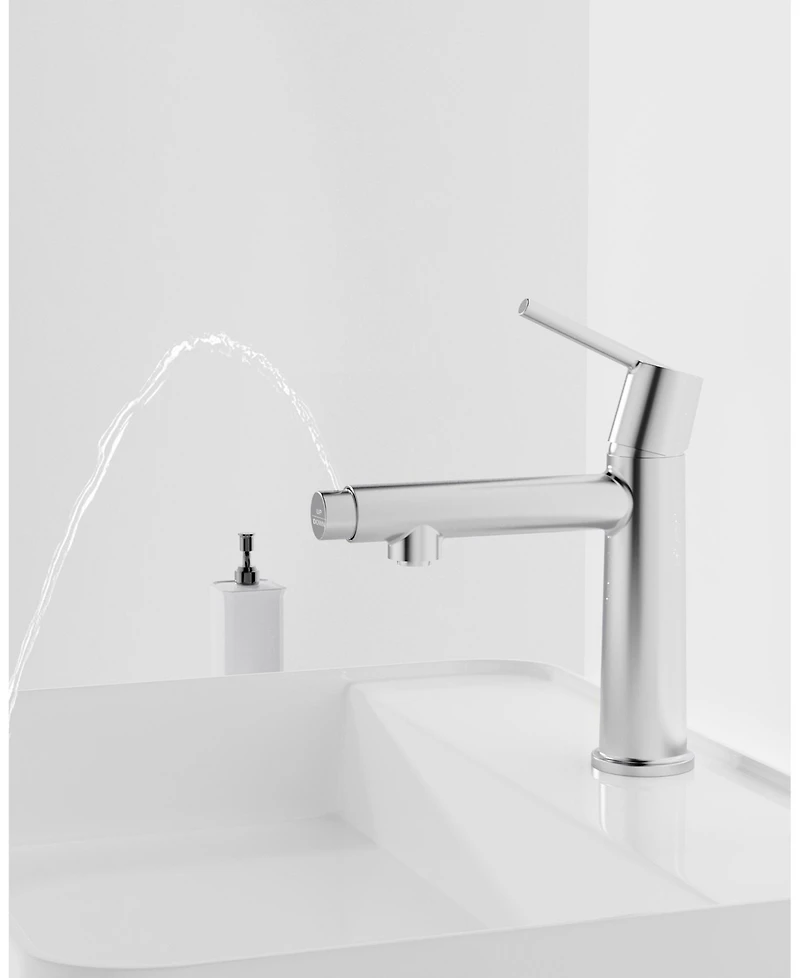 This chrome single handle bathroom faucet fits 1/3 holes, supports deck mount, and includes two 9/16"" hoses. It features 2-in-1 fountain and flow modes, ideal for bathroom, laundry and vanity sinks. With premium chrome finish, it is scratch-resistant, corrosion-proof, and easy to clean without water spots or fingerprints. The single handle allows smooth control of water flow and temperature. The imported Abs aerator delivers soft, splash-free water, improves water efficiency, and is detachable for easy cleaning. Suitable for home, apartment, Rv and more. Easy Diy installation in 30 minutes with 4-inch deck plate. All accessories included. Fast-connect design needs no wrench, with anti-burst pipe for safe and stable use.