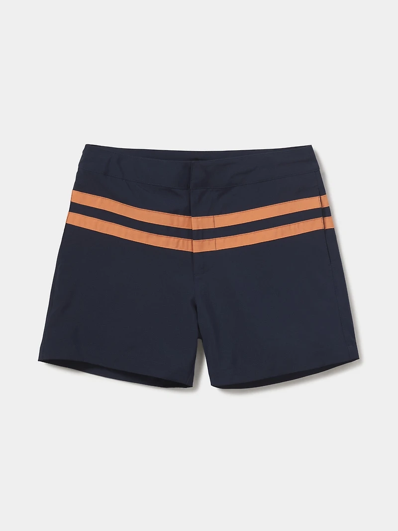 Get a tailored look, without compromising on your ability to move. These button front trunks have a shorter inseam for a sophisticated look, and with enough stretch to make sure you can still hit the waves. Fully functional mesh pockets with zipper closures, and a hidden snap and zipper make these trunks as functional as they are flattering.