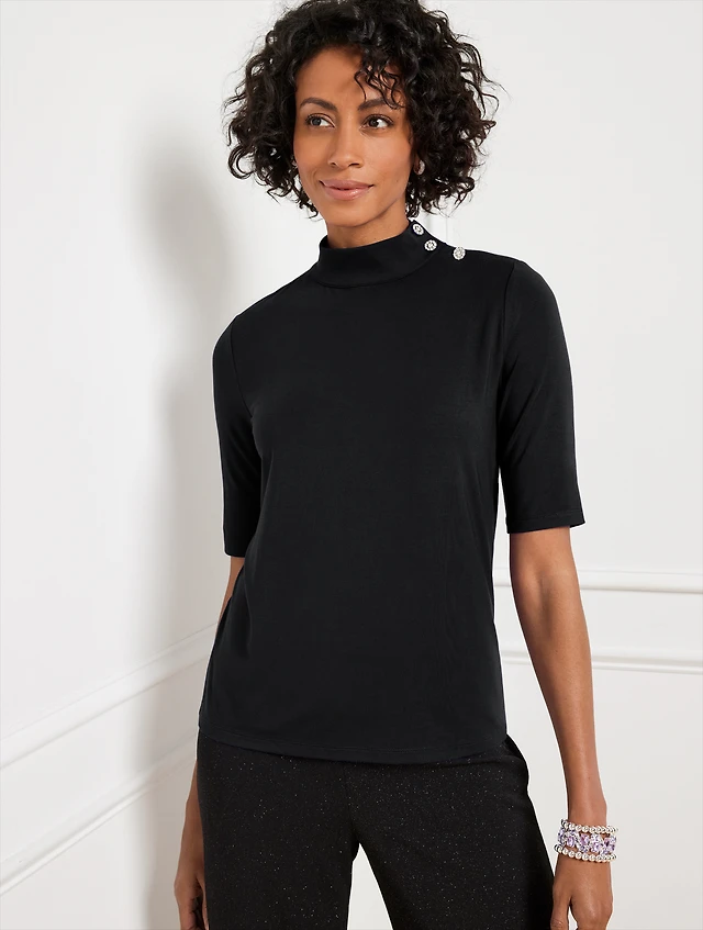 Button Shoulder Mockneck Top