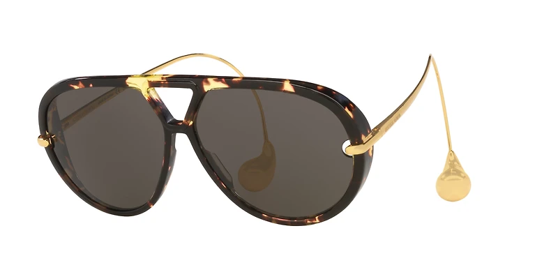 Make a bold statement with the Bottega Veneta BV1273S sunglasses. These full-rim tortoise sunglasses, crafted from acetate, showcase a striking irregular shape for a contemporary edge. Paired with sleek metal temples and classic grey lenses, they offer both sophistication and versatility. Perfect for elevating any look with effortless charm.