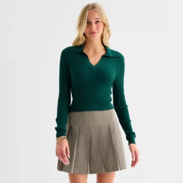 by&by Juniors Womens Long Sleeve Polo Sweater