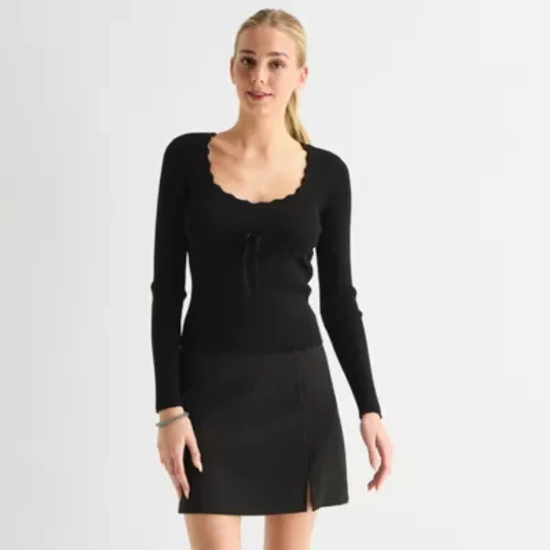 by&by Juniors Womens U Neck Long Sleeve Polo Sweaterby&by Juniors Womens U Neck Long Sleeve Polo Sweaterby&by Juniors Womens U Neck Long Sleeve Polo Sweater