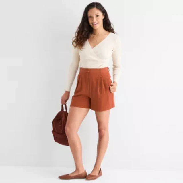St. John's Bay Womens Mid Rise Pleated Short