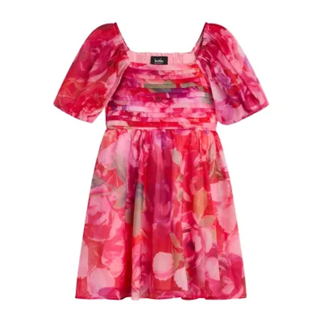 Byer California Big Kid Girls Short Sleeve Puffed A-Line Dress