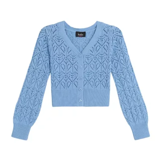 Byer California Little & Big Kid Girls Round Neck Long Sleeve Button Cardigan