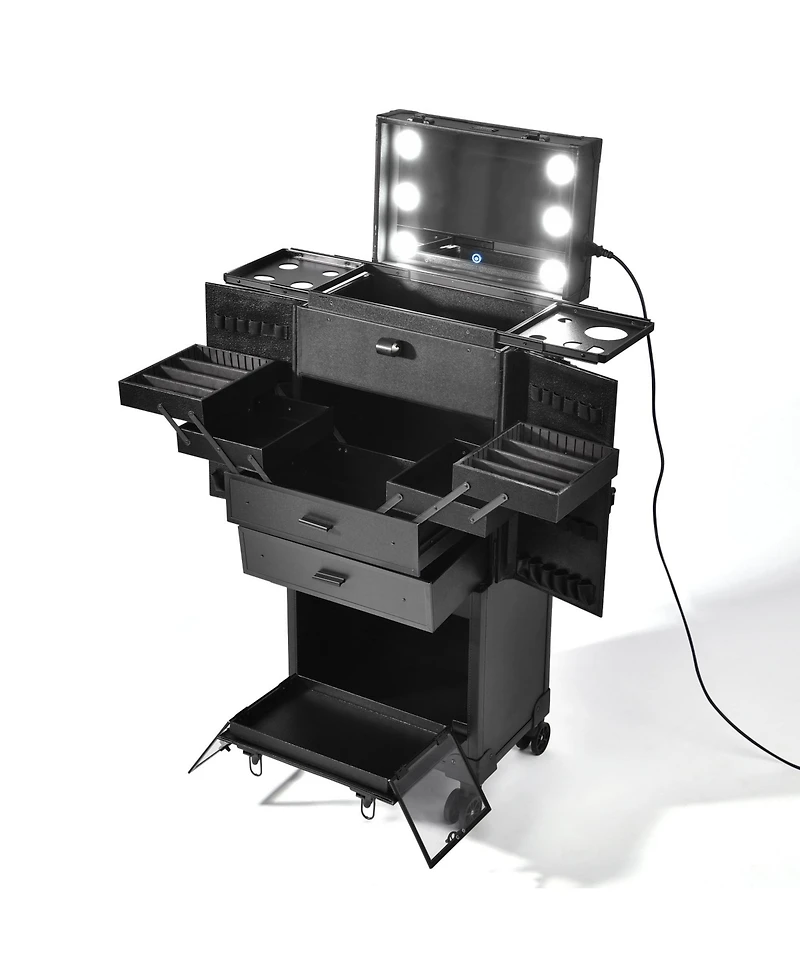 Byootique Pro Rolling Makeup Case Aritist Cosmetics w/ Lights Mirror Studio Black