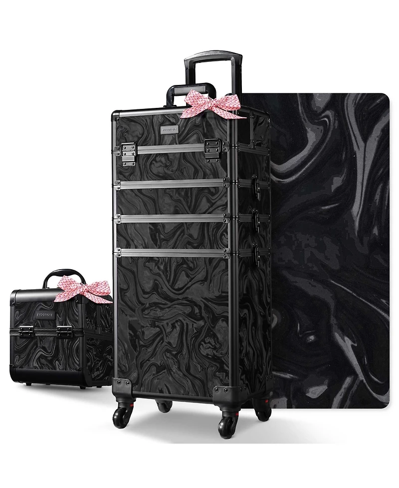 Byootique Rolling Makeup Train Case with Portable Cube Case Cosmetic Organizer