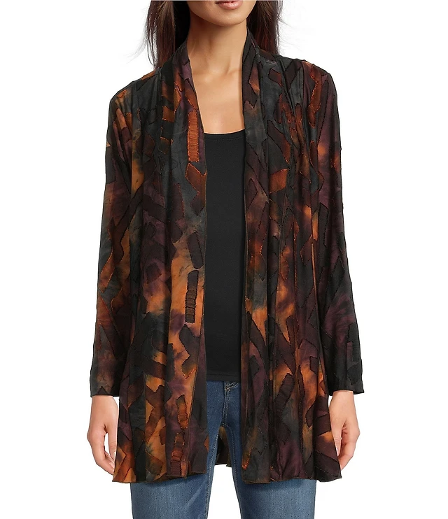 Calessa Tie-Dye Burnout Shawl Long Sleeve Open Front Cardigan