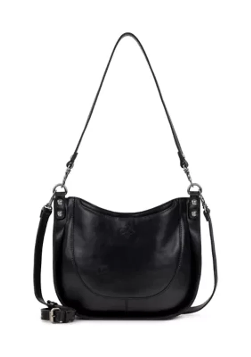 Boho chic meets convenient practicality in the Caletta by Patricia Nash. Wear it with the adjustable/detachable strap or make a different statement by carrying it by the handle. The Caletta gives you options. Magnetic snap closure Crossbody strap with 14.5" drop Exterior: 1 rear snap pocket, 1 front snap pocket, burned edge finish Interior: 1 zip pocket, 2 slip pockets, faux suede lining, 100% polyester Imported Product Specifications 11" W x 9.75" H x 3" D Material & Care Leather trim Leather Wipe clean