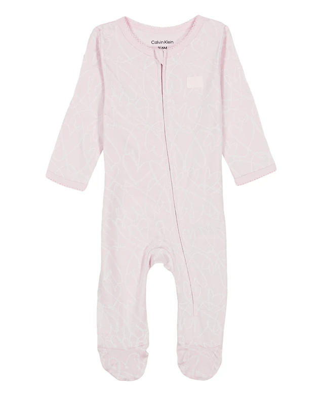 Calvin Klein Baby Girls Heart Sketch Zip-Front Footed Coverall