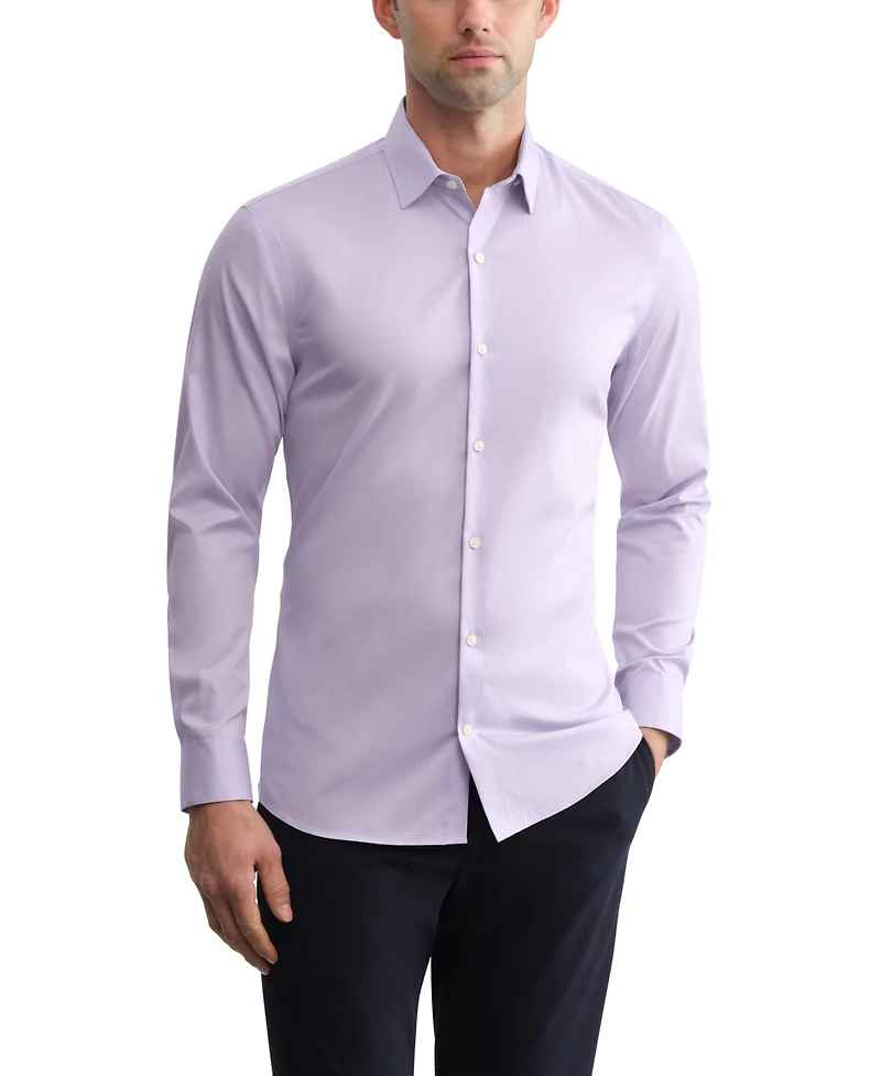 Elevate contemporary dressing with this Calvin Klein long-sleeve shirt, crafted with a spread collar and an untucked length for a clean, versatile finish. An extra slim-fit creates a sharp, modern profile, while the wrinkle-free design helps maintain a crisp look throughout the day.