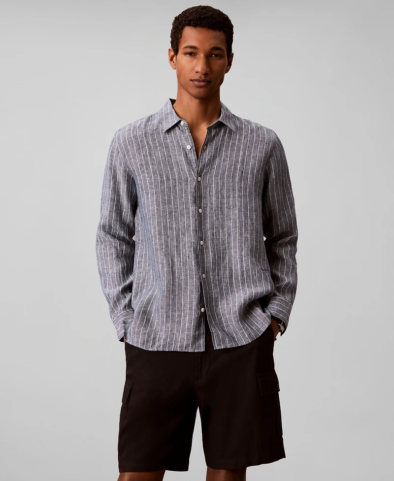 Calvin Klein Men's Yarn-Dyed Pinstripe Linen Classic Shirt