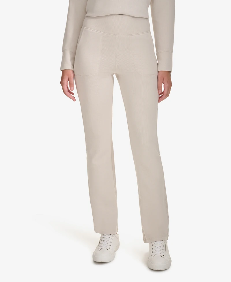 Delight in the combination of fashion and functionality with these Calvin Klein pants, designed with a flared-leg silhouette. The high-waist design ensures better support, while the front pockets enhance convenience for everyday use.