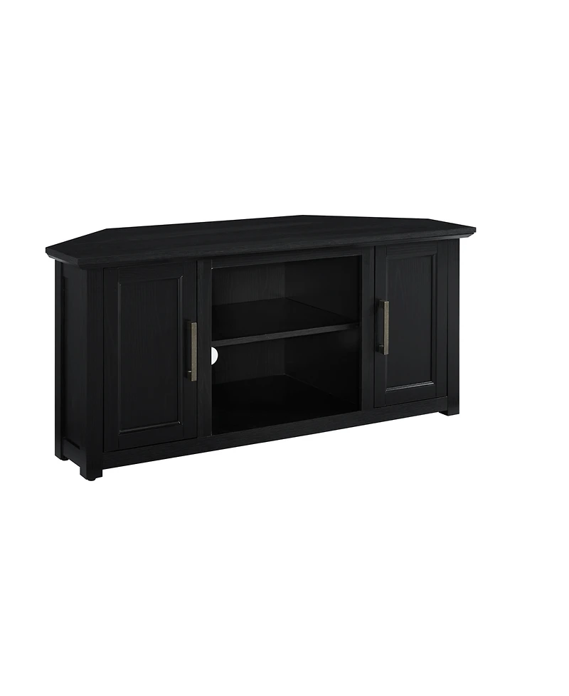 Featuring two cabinets with an adjustable shelf in each, this stand is ready to corral your books, video games, or other media. The open storage in the center offers an adjustable and removable shelf with two pre-cut holes in the back for cable management. Sized to fit most Tv's up to 50"".