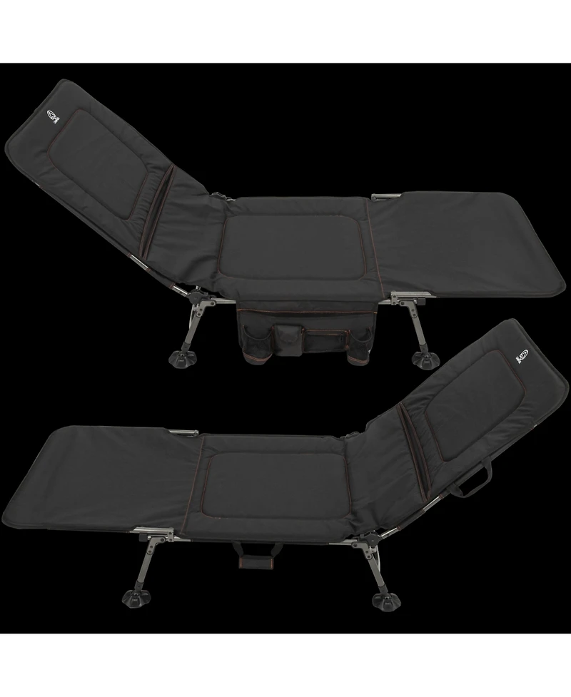 The Camp and Go luxury camping bed is the ultimate in comfort when you're on the go. It has a fully-padded resting surface| a 5-position reclining headrest| and a fully-loaded cot caddy with a drink holder and zipper pockets for your belongings. It also has anti-sink feet for stability on soft and loose surfaces. The bed has a convenient carry handle and a tri-fold system for mobility.