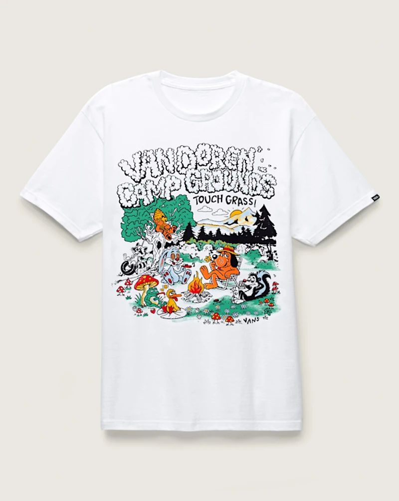 The Camp Van Doren T-Shirt brings an illustrated outdoor scene to life with bold color and personality. Featuring a classic crew neckline and easy everyday comfort, this tee channels the spirit of adventure—whether you're exploring actual trails or just kicking back with friends. It’s a fun, expressive staple ready for whatever the day brings.